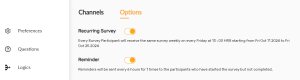 You can create a reminder as a nudge for the participants. You can choose from 6 hours, 12 hours and 24 hours for reminders. You can set a nudge for maximum 3 times within the designated hours. This means if you set a reminder for every 6 hours, the survey will automatically nudge the respondents 3 times after every 6 hours.