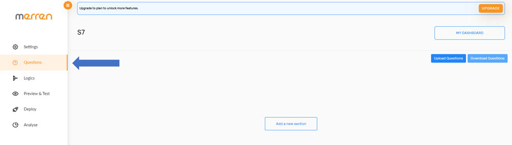 - Once the settings are done, move to the questions tab from the menu to the left of the screen