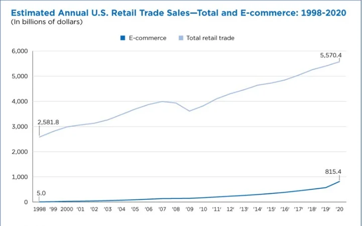 As per the United States Census Bureau, ecommerce sales sky-rocketed from $571.2 billion in 2019 to $815.4 billion in 2020.