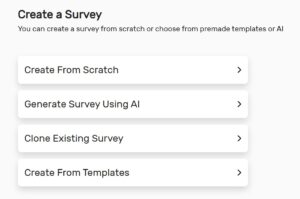 When you click on ‘Create A Survey’, you can build a new questionnaire. You can choose from existing templates or build from scratch.