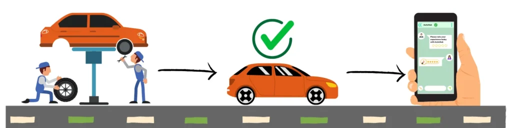 - It is imperative to track the satisfaction at certain milestones post purchase. This can be in the form of (real-time) mediums of communication such as via Whatsapp, SMS or Facebook Messenger. The milestones can be anything from a first month usage to their first 1000 miles.