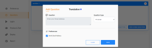 Merren also encourages CX marketers to create multilingual questions in the ‘translation’ tab. Choose your language in the settings and don’t forget to save it. Merren will auto-translate the questions.
